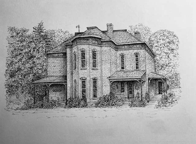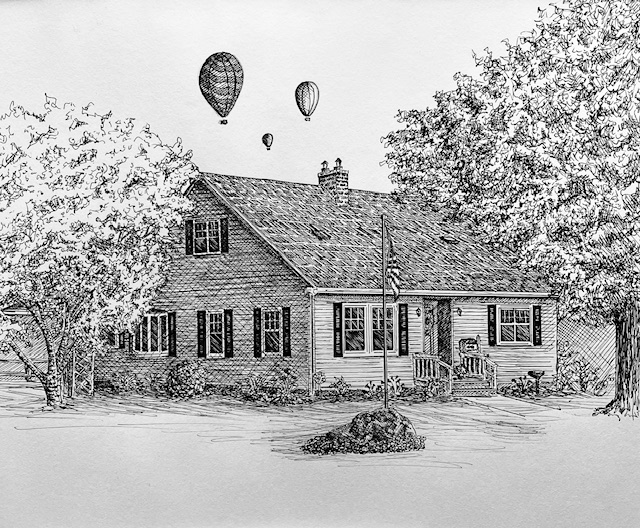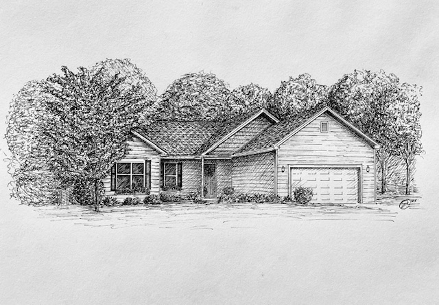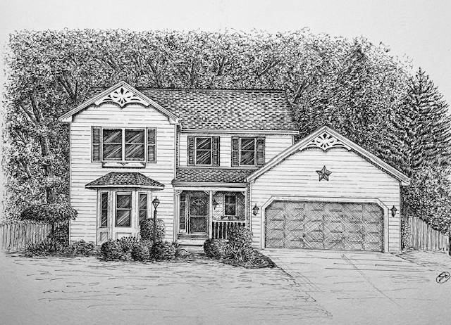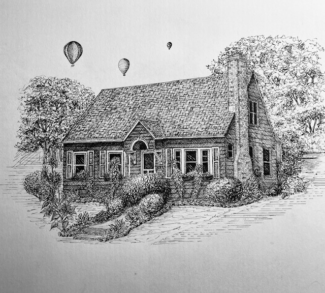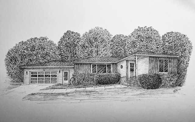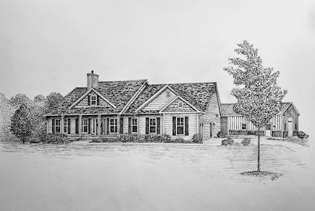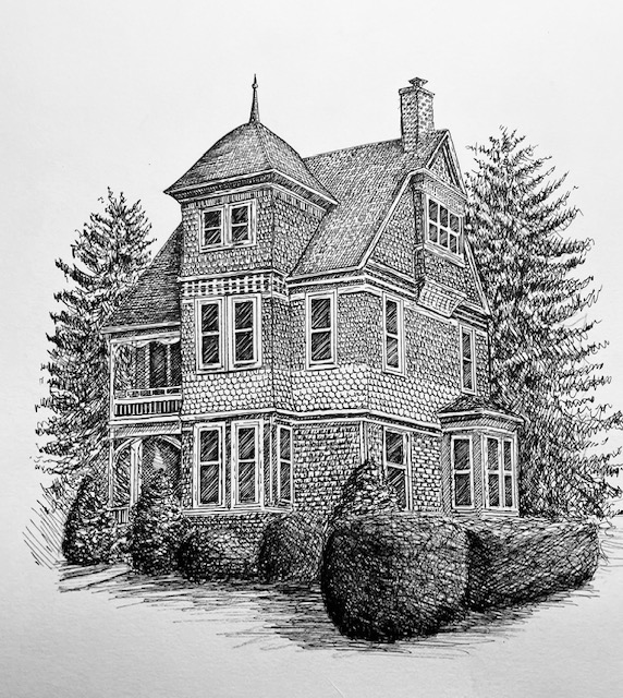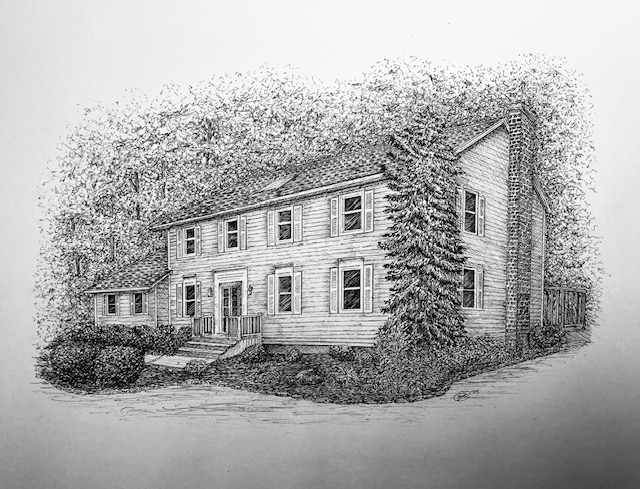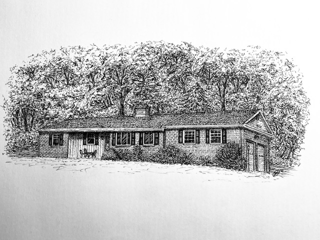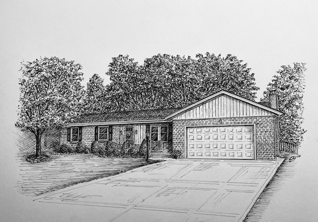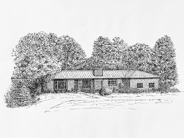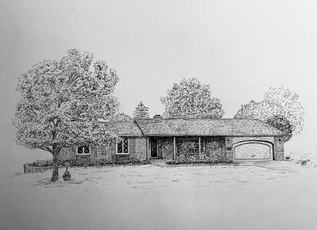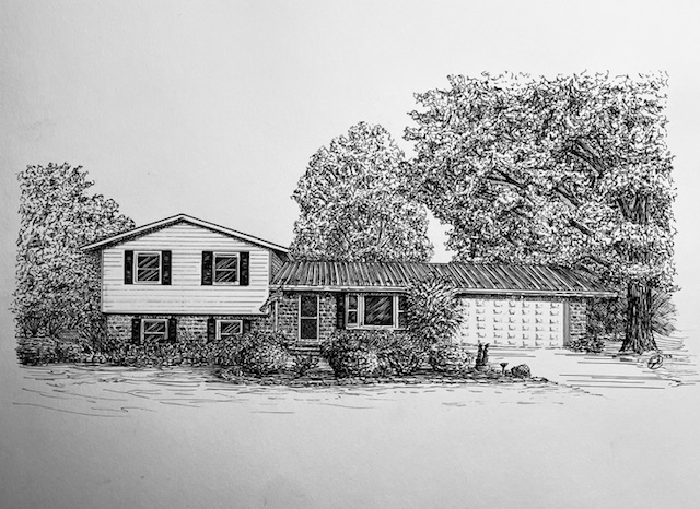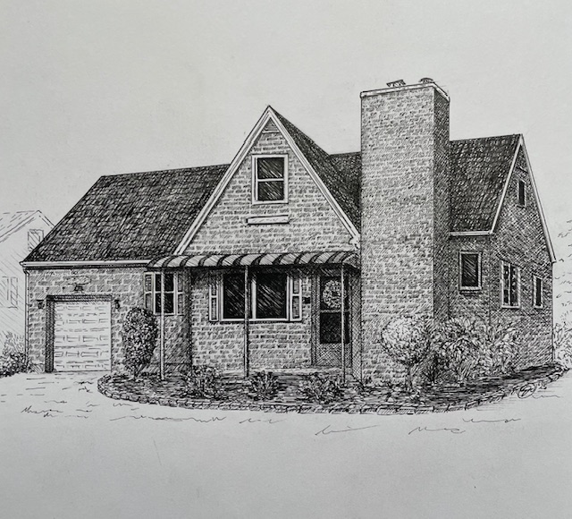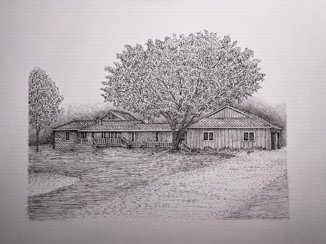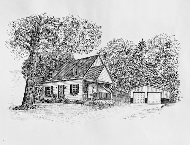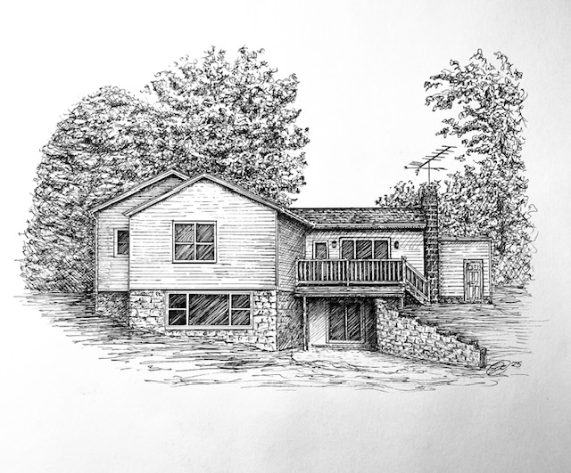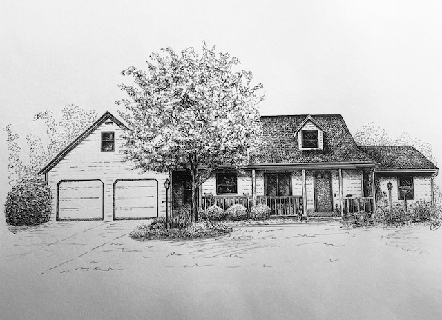 I create custom pen and ink illustrations of homes—drawn from your photos, brought to life by the memories that shaped them. More than just drawings, these pieces capture the spirit of a place and become lasting heirlooms.
